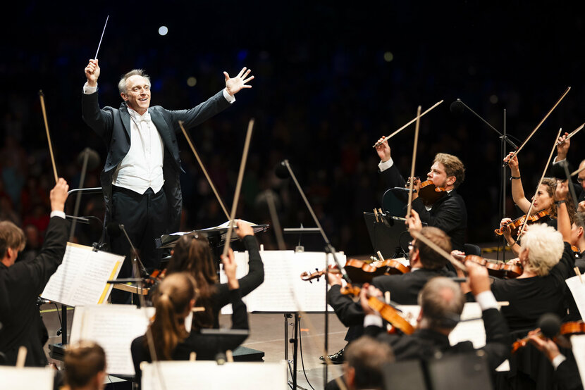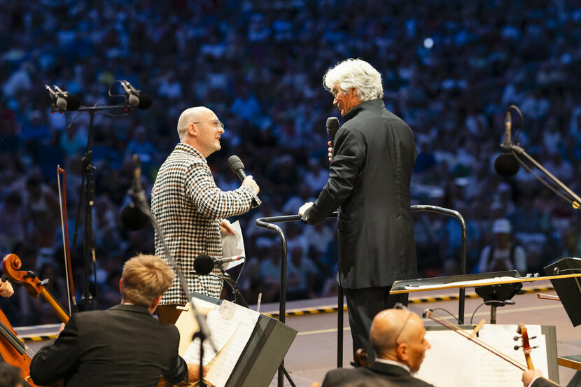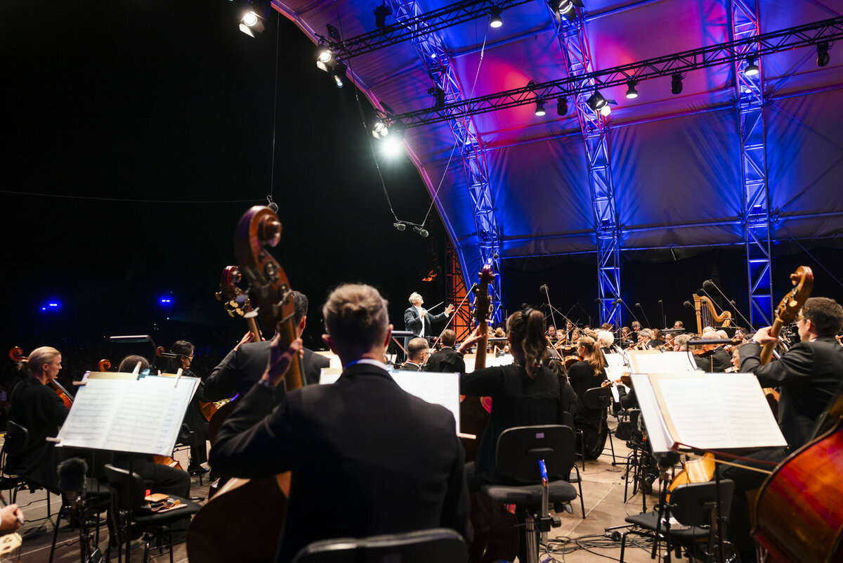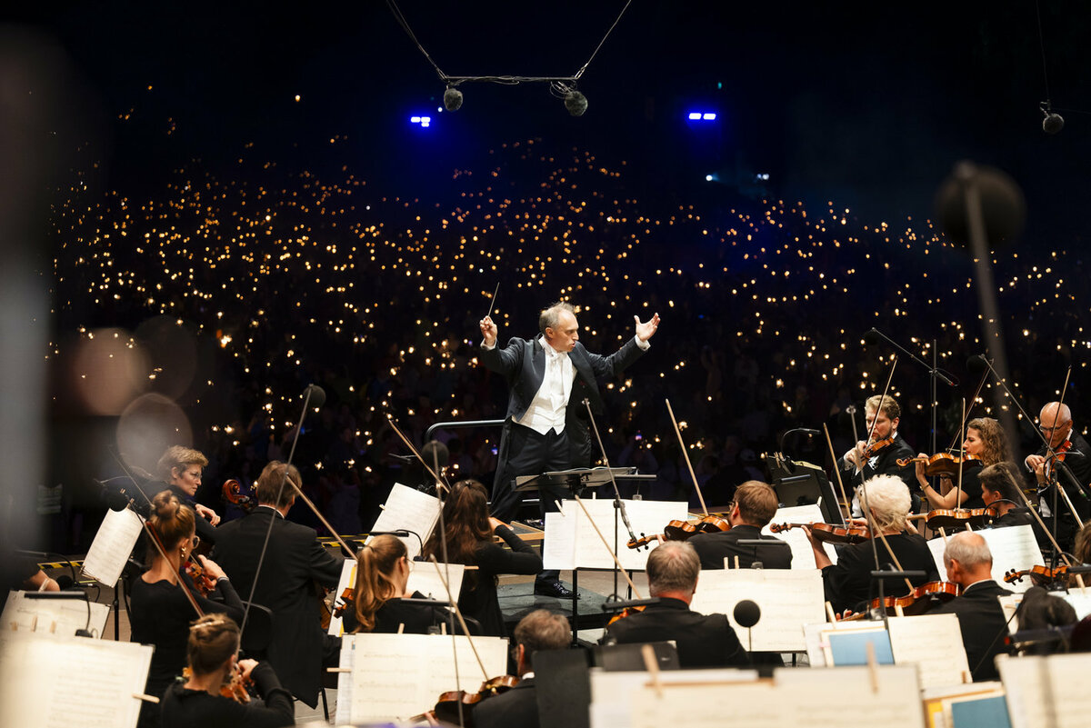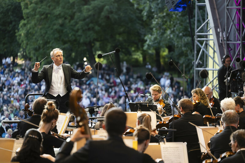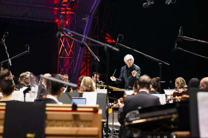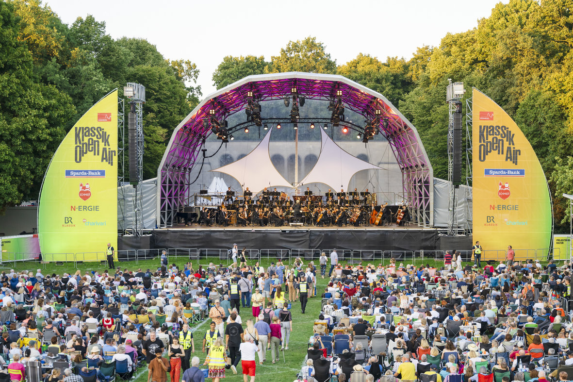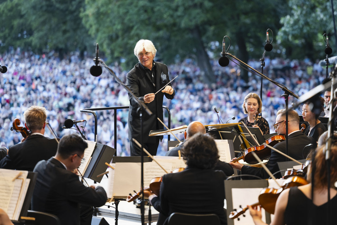 Den krönenden Abschluss des Klassik Open Air 2025 bildete das Konzert der Nürnberger Symphoniker am Samstag, 9. August. Pünktlich dazu kehrte auch das Sommerwetter in die Stadt zurück: Angenehm milde Temperaturen und die sanfte Lichtstimmung eines sommerlichen Abends lockten rund 80.000 Besuchende in den Luitpoldhain.