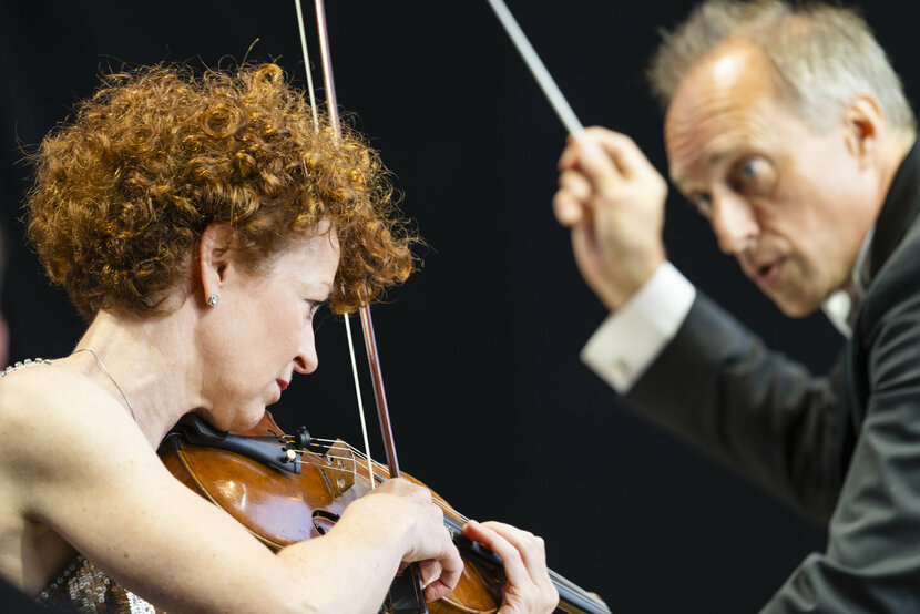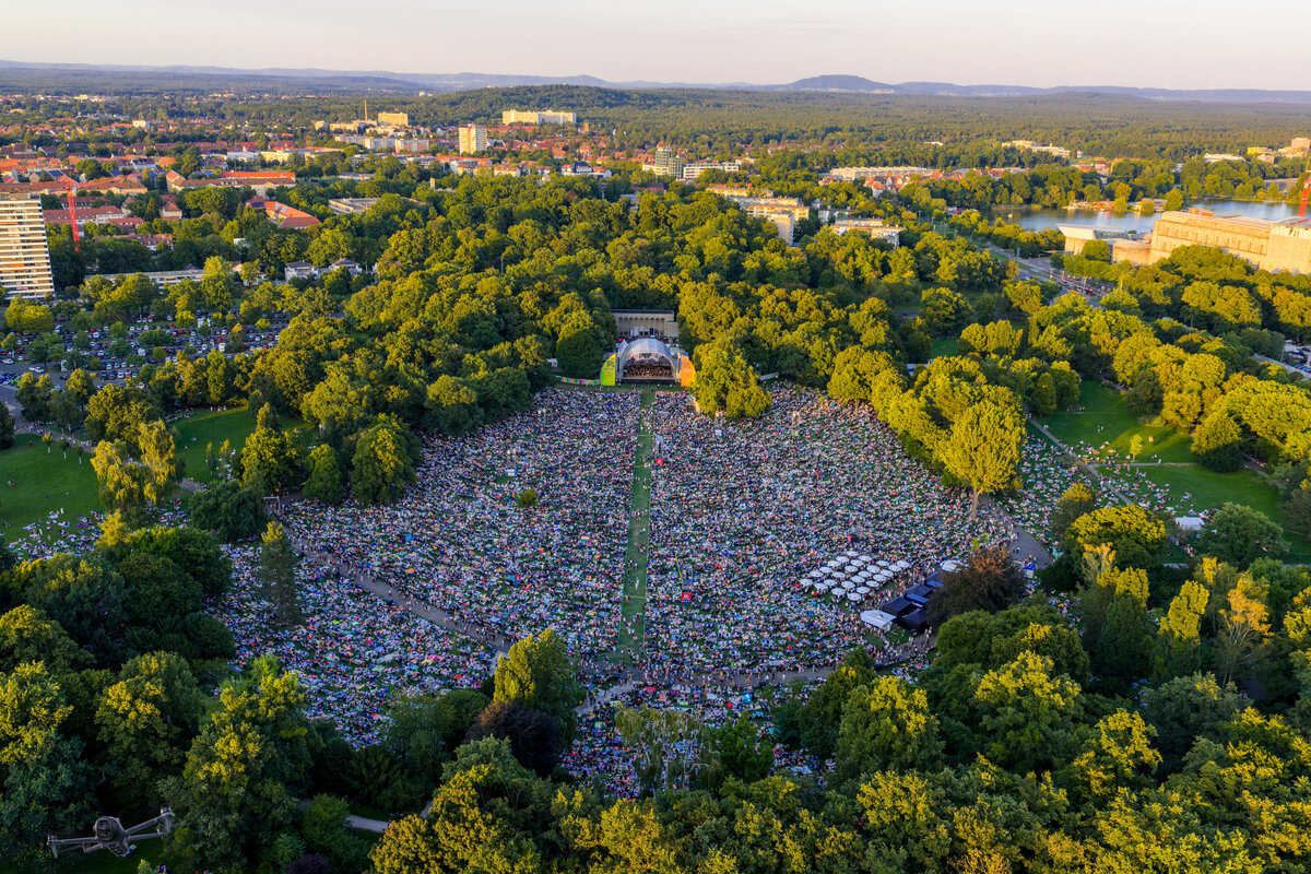 Rund 45.000 Musikbegeisterte lauschten dem Abendkonzert “Goldene Zeiten” mit der Staatsphilharmonie Nürnberg unter der Leitung von Generalmusikdirektor Roland Böer und mit der Solistin Carolin Widmann (Violine) am 27. Juli 2025 im Luitpoldhain.
