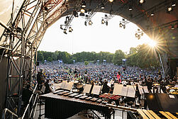 Er bleibt Europas größter und grünster Konzertsaal – der Nürnberger Luitpoldhain. Seit der Jahrtausendwende ist er Schau- beziehungsweise Hörplatz des Klassik Open Air der Stadt Nürnberg. Im Juli und August verwandelt sich der Park in ein Festivalgelände der besonderen Art. Die bunte Stadtgesellschaft von heute trifft sich zum entspannten Picknick mit Wunderkerzen: Metal-Fans lagern neben den Mitgliedern des musikalischen Damenkränzchens, eine türkische Picknickgesellschaft teilt sich das Brot mit ukrainischen Konzertliebhaber*innen. Klassik-Kenner*innen und Sound-Einsteiger*innen lagern friedlich und vereint auf der grünen Wiese, und reagieren spontan mit Applaus und Tanzeinlagen. Jung und Alt, Familien und Freund*innen pilgern zu diesem atemberaubenden Bürgerfest, das mal als „Woodstock der klassischen Musik“ bezeichnet wurde. Es ist die große Bühne für Nürnbergs Orchester – bei freiem Eintritt.